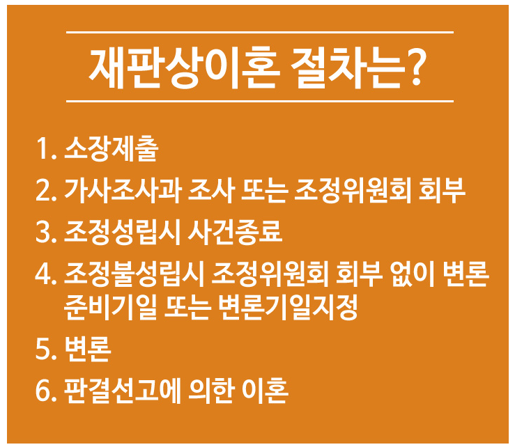 문서등을 생성하고 가정법원에 내면 됩니다. 그후 재판이혼 절차로 가정법원은 해당 내용을 체크하고 한달 안으로 답을 하라는 문서를 남편 또는 아내에게 보내게 되죠