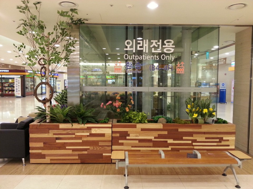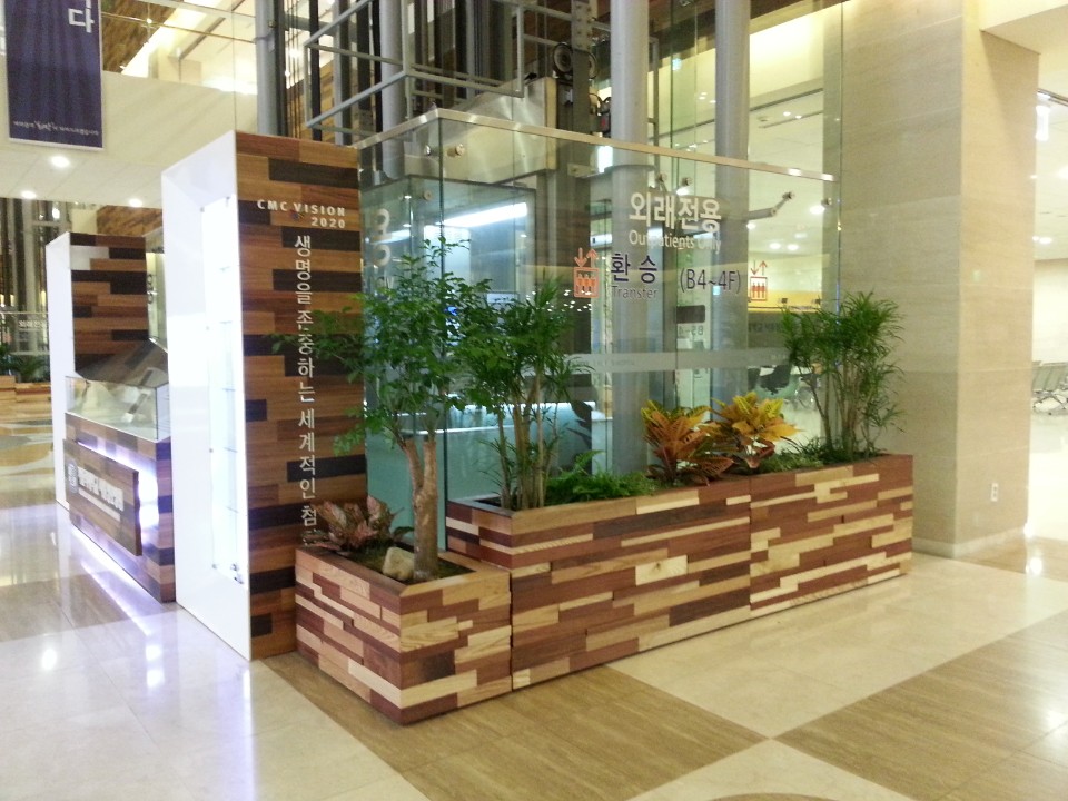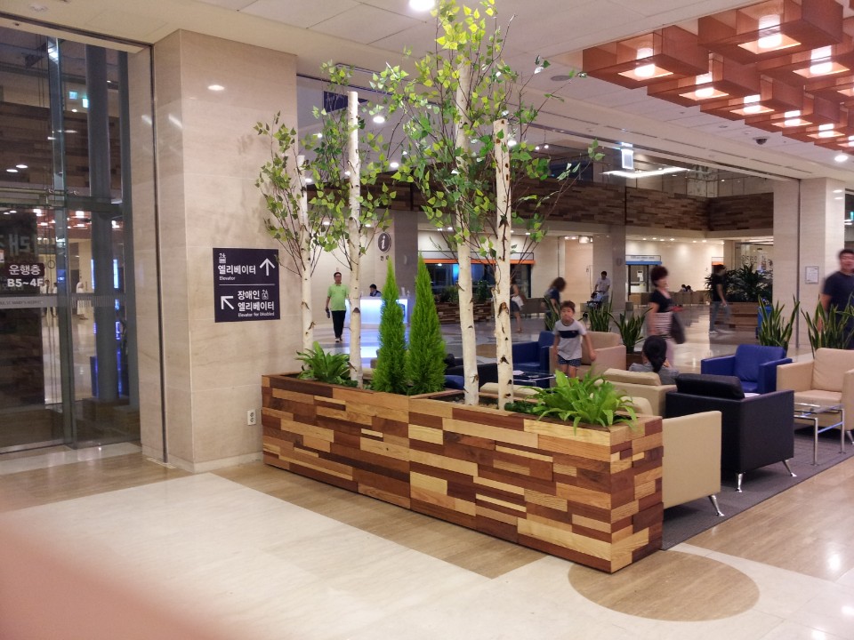 최근에는 호텔 , 공공기관, 병원등에도 목재화분을 이용한 플랜트박스가 유행하고 있는데요